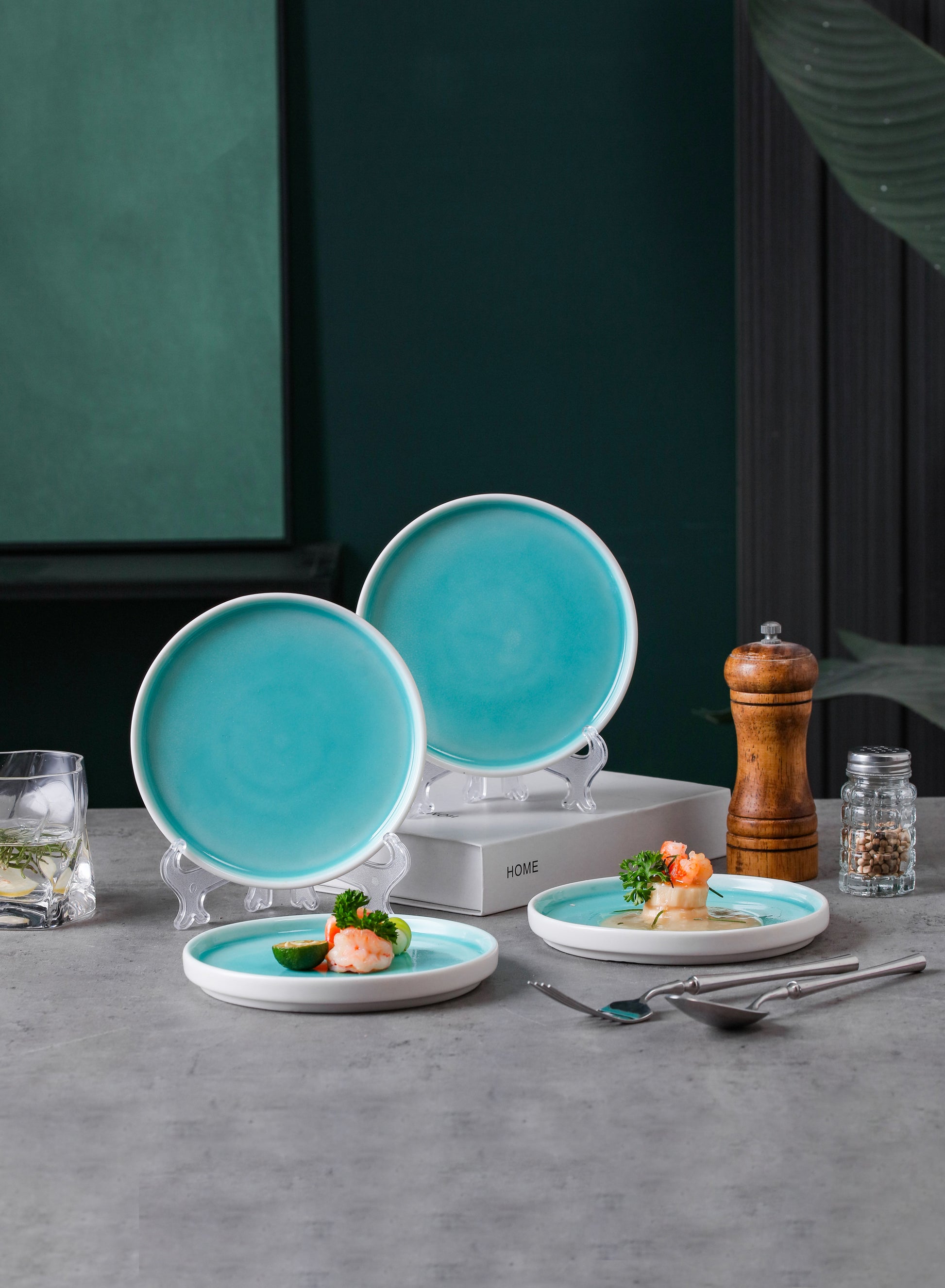 SHUER 15CM Dinner Ceramic Dinnerware of 4PCS Green, Suitable for Ramadan, Wedding, Dinner Scenes